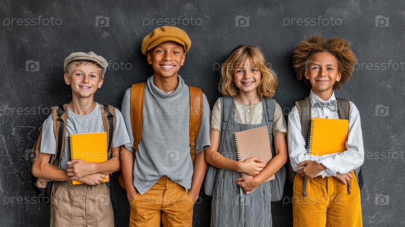 Веселые студенты, несущие припасы, студенты, взволнованные книгами и рюкзаками, Веселые ученики, гуляющие со своими сумками, заполненными тетрадками и школьными принадлежностями