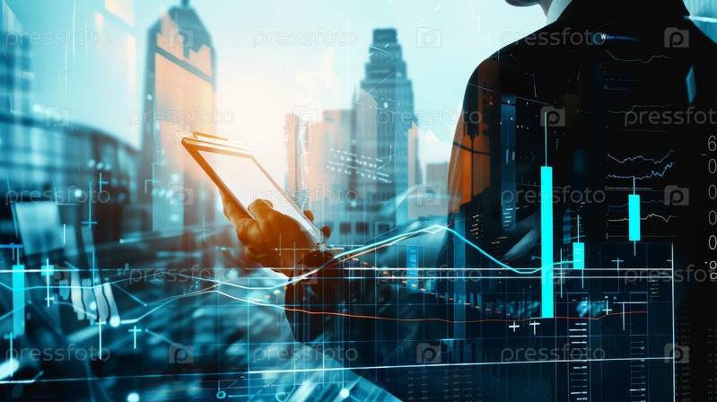 Опытный бизнес-профессионал анализирует финансовые данные с помощью цифровой аналитики в современном рабочем пространстве