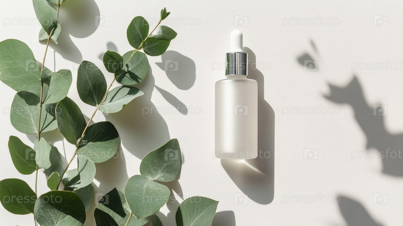 Эвкалипт Бутылки эфирного масла элегантно окружены свежими и красивыми цветами лаванды для эстетической привлекательности