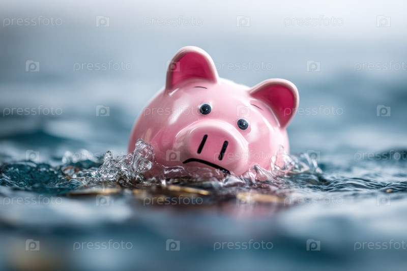 Банк Piggy погружается в долги, символизирующие финансовую перегрузку, личное банкротство или экономическое давление