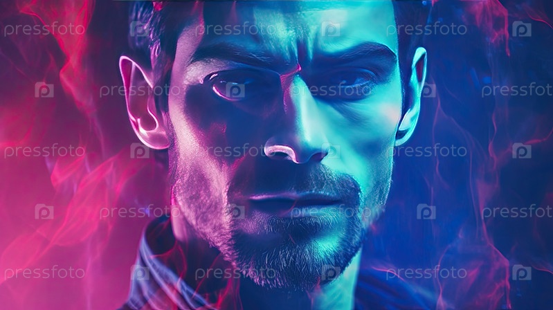 Футуристический портрет красавца с неоновыми огнями