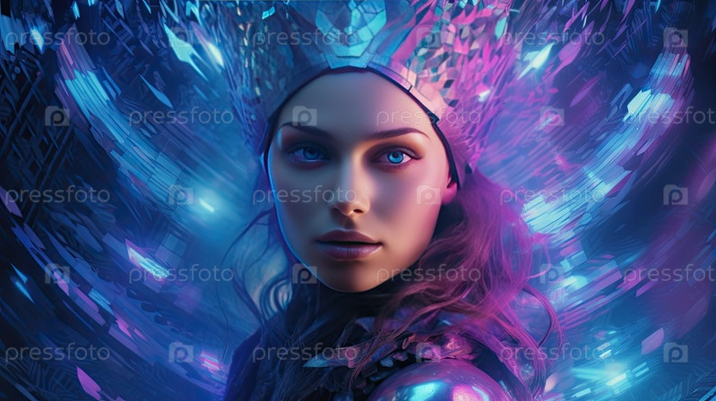 Футуристический портрет в неоновых огнях киберпанка