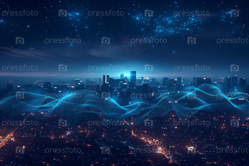 Потрясающий, захватывающий городской пейзаж с яркими неоновыми огнями, которые создают захватывающую цифровую эстетику