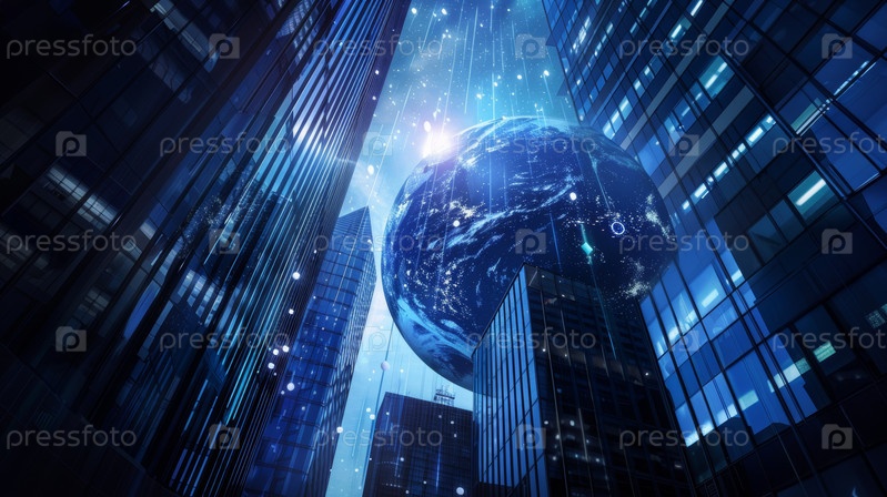 Яркое сочетание технологий и городской жизни, демонстрирующее мир среди величественных возвышающихся небоскребов