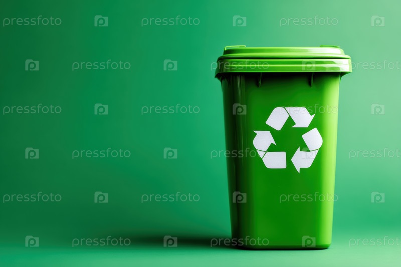 Зеленый мусорный бак с символом переработки