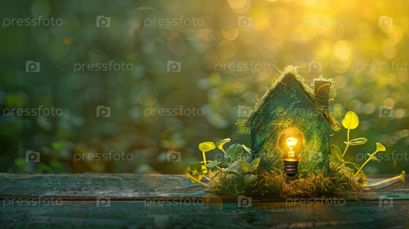 Очаровательный миниатюрный дом, охваченный зеленью, освещенный теплым светом, вызывающим волшебную атмосферу