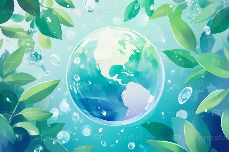 Эта работа ярко показывает, как Земля брызгает в воду, символизируя экологичность и устойчивость