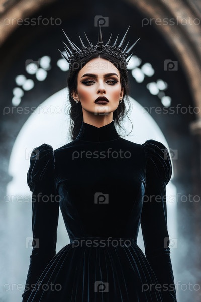 Захватывающая и очаровательная королева, источающая готическая элегантность, изящно украшенная яркой шипованной короной