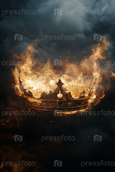 Средневековая корона горит в пламени, дыме и угли