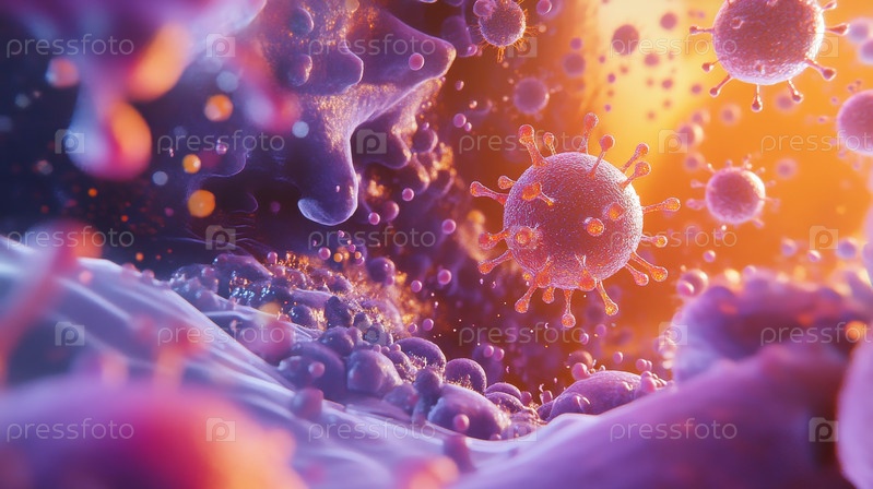 Микроскопический обзор вируса среди эритроцитов, иллюстрирующий медицинские исследования и санитарное просвещение
