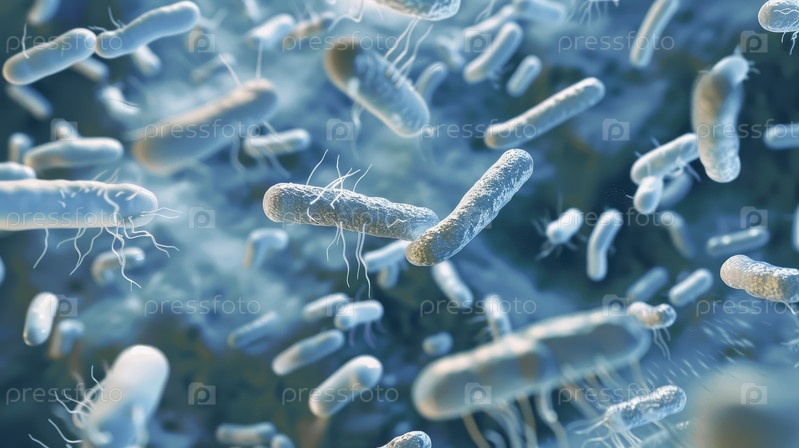 Сложные детали различных типов бактерий представлены на красочном, жидком фоне