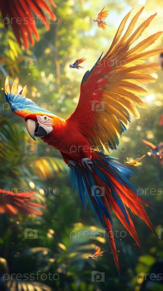 Удивительный летающий тропический лес птица-попугай