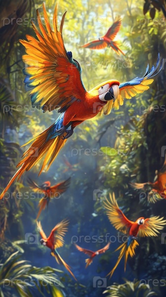 Удивительный летающий тропический лес птица-попугай