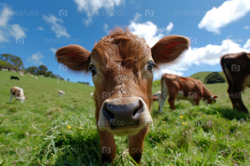Маленькие коровы на открытой коровьей ферме