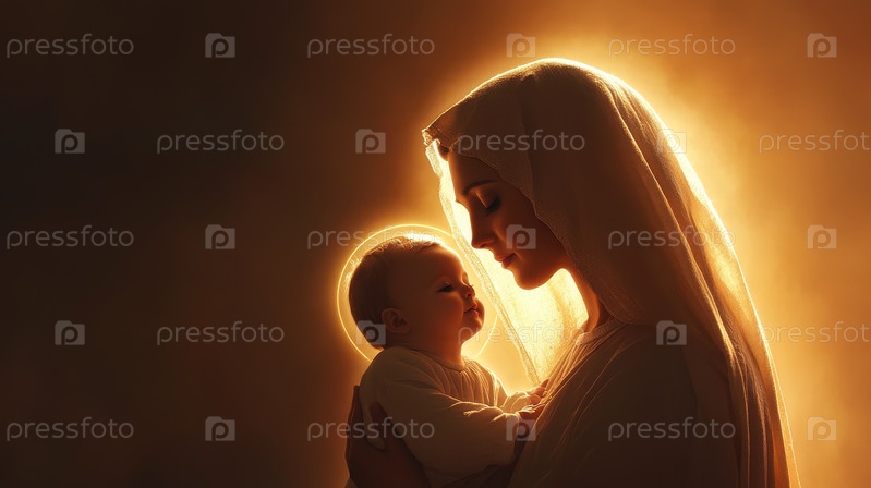 Прекрасно нежный момент, разделенный между любящей матерью и ее драгоценным ребенком, Девой Марией и младенцем Иисусом