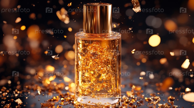Роскошная бутылка сыворотки с плавающими золотыми хлопьями