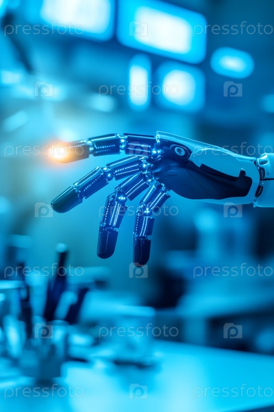 Гладкий и продвинутый футуристический протез конечности со встроенными датчиками роботизированная рука легко взаимодействует в современной среде медицинского учреждения