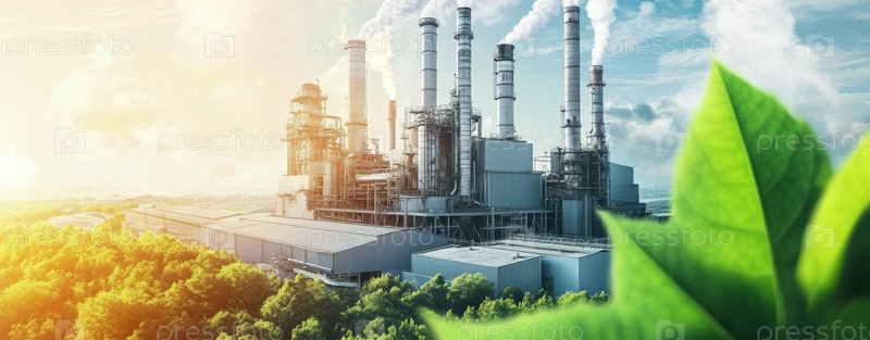 Промышленный объект, окруженный пышной зеленью и чистым голубым небом, который повышает его эстетическую ценность