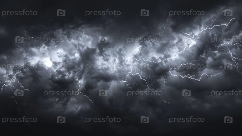 Штормовые облака приносят гром и молнии, хаотичная погода с вспышками молнии и грома, пасмурное небо, демонстрирующее яростные удары молнии и грохочущие громовые звуки