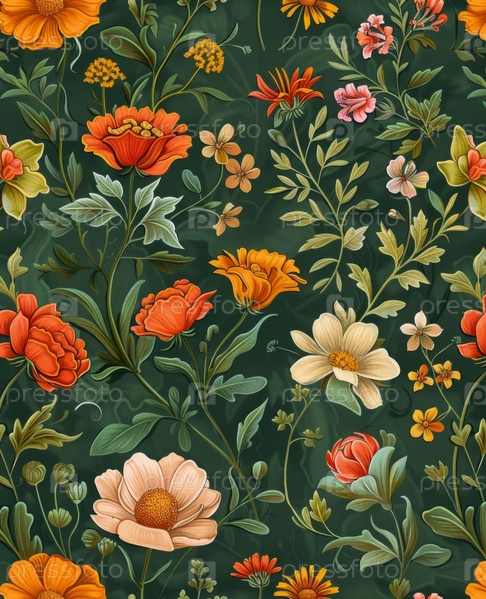Ботанический рай с пышным садовым узором с яркими цветами и зеленью, идеально подходит для обоев и тканей