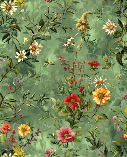 Ботанический рай с пышным садовым узором с яркими цветами и зеленью, идеально подходит для обоев и тканей