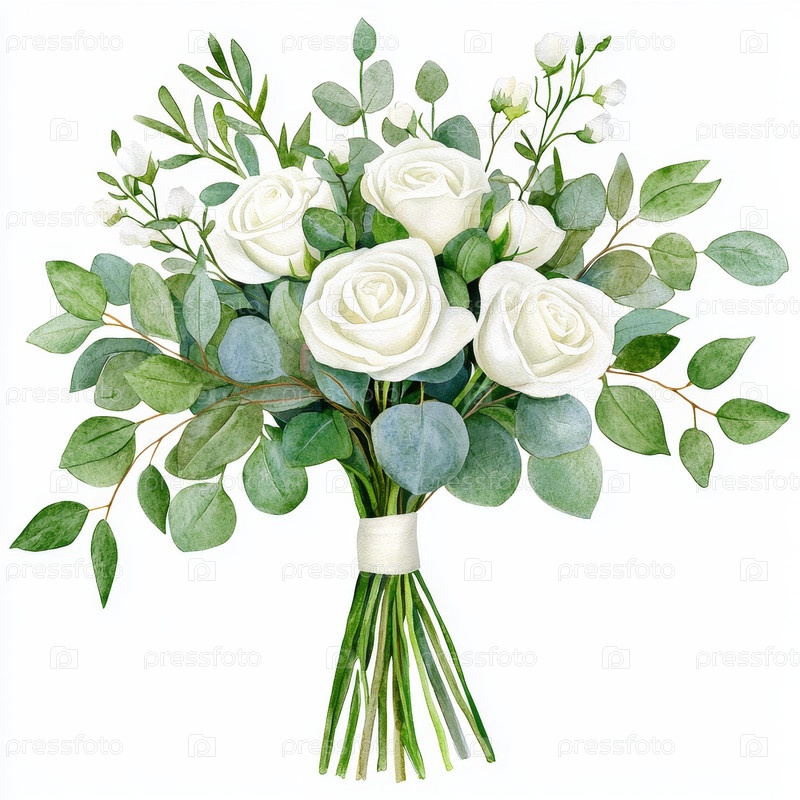Свадебный букет клипарта, белые розы и эвкалипт