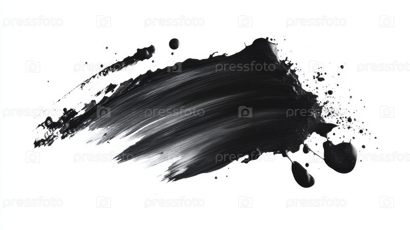 Черные чернильные мазки по белой минималистской абстрактной текстуре с динамическим брызгами, нерегулярными краями, высококонтрастной монохромной композицией для дизайна и редакционного использования