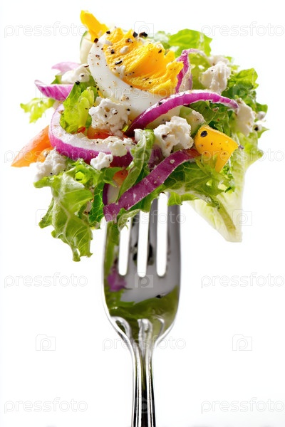 Хрустящие красочные салатные стопки на вилке, слоистые томатной моцареллой редис аругула и микрозеленью, посыпанные кунжутом и моросью оливкового масла, яркие