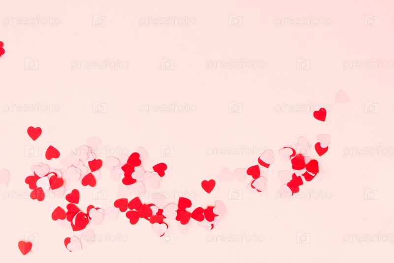 День святого Валентина праздничный фон с разбросанными сердцами на розовом фоне, пограничное копирование пространства