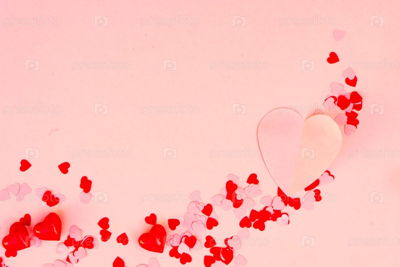День святого Валентина праздничный фон с разбросанными розовыми и красными сердцами над розовым фоном с копирайтом