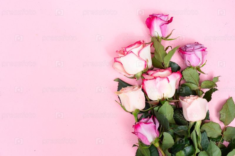 День свадьбы или матери фон, букет над простым розовым фоном