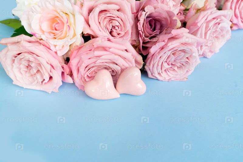 Цветущие розовые цветы букет с сердцами, День святого Валентина