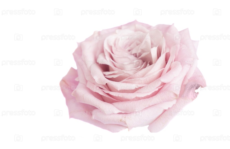 Мягкая розовая роза с текстурами, Крупный план красной розы с нежным освещением и мелкими деталями, Макро снял, захватывая мягкие пастельные розовые лепестки против яркой белой студийной обстановки