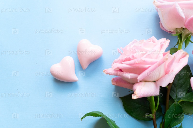 Цветущий букет цветов розовой розы с подарочной коробкой, фон Дня святого Валентина