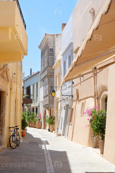 Уютная улица старого города Ретимно, Крит, Греция, Retro Toned