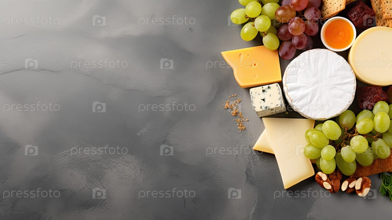 Сырная тарелка. вид сверху с копией на темном столе