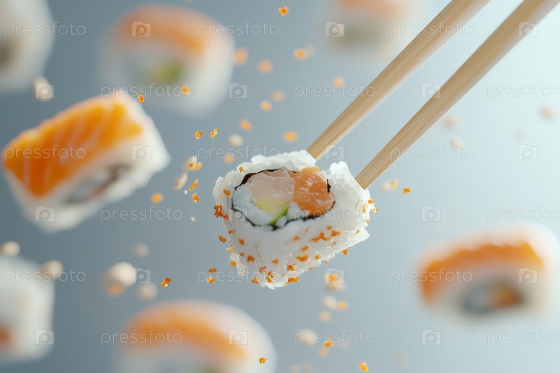 Салмон нигири суши с палочками для еды. Азиатская кухня