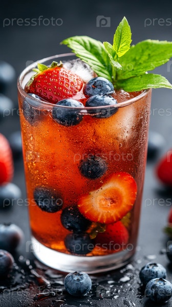 Яркий и игристый напиток, приготовленный из свежей клубники и черники, идеально подходит для освежающего поворота
