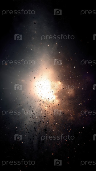 Яркий луч светоизлучающих частиц, эфирная атмосфера с плавающими пылевыми ямками, сильный контраст монохромных, лучистых лучей, раздувающихся из одного