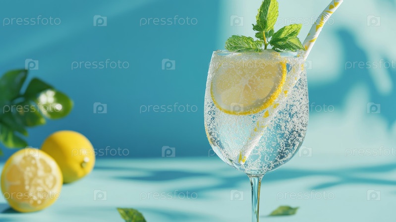 Яркий цитрусовый напиток подается в стакане, украшенном свежим мятой и лимоном для освежающего поворота
