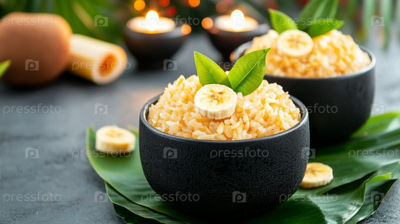 Яркий и красочный показ свежих тропических фруктов прекрасно сопровождается пушистым кокосовым рисом