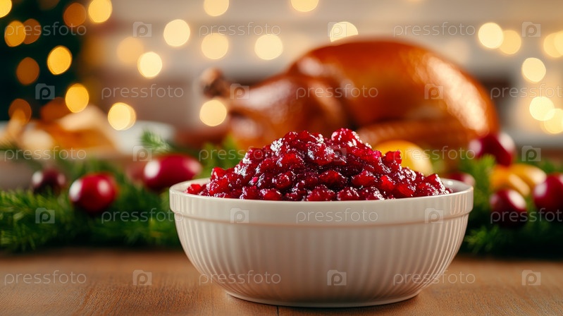 Восхитительная и праздничная чаша богатого клюквенного соуса прекрасно дополняет прекрасно поданный ужин с индейкой