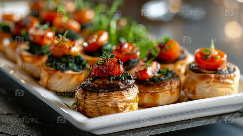 Наслаждайтесь пирожными с гурманами, наполненными пикантными грибами и шпинатом, идеально подходящими для элегантных закусок и вечеринок