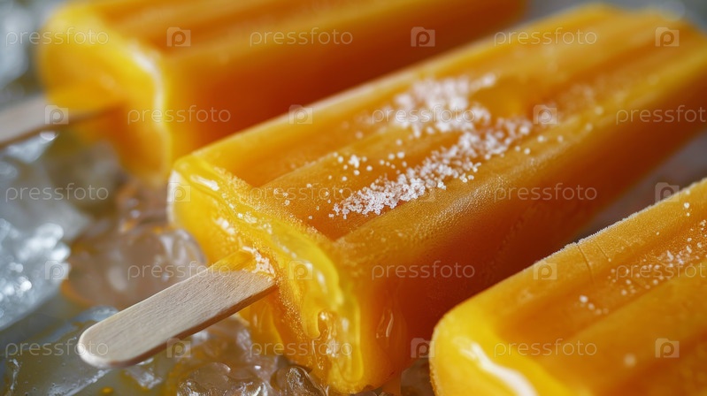 Яркие цитрусовые попсиклы с красочным фоном боке. Идеально подходит для летних и прохладительных концепций