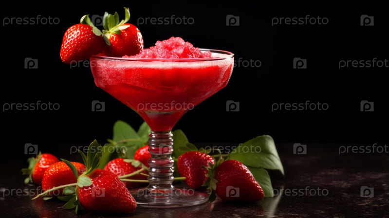 Сохраните клубничный дайкири с гарниром и мятным листом на деревянном столе для освежающего летнего напитка