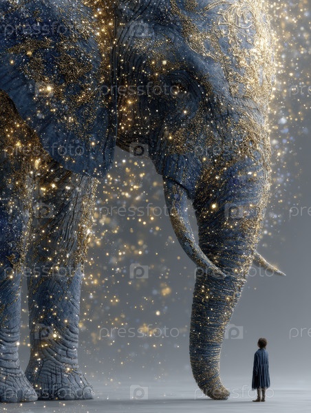 Просветленный слон на фоне потрясающе современной и яркой фоновой сцены