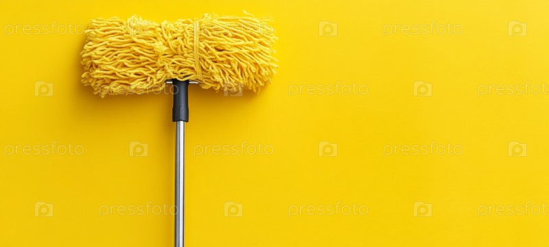 Яркая фотография показывает чистящую швабру на ярко-желтом фоне, идеально подходящую для домашних тем