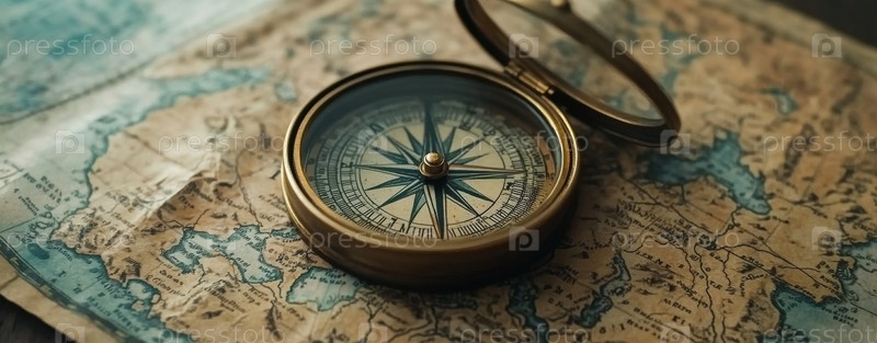 Отправляйтесь в путешествие открытий, исследуя мир, используя этот вневременный классический компас, установленный на старой карте