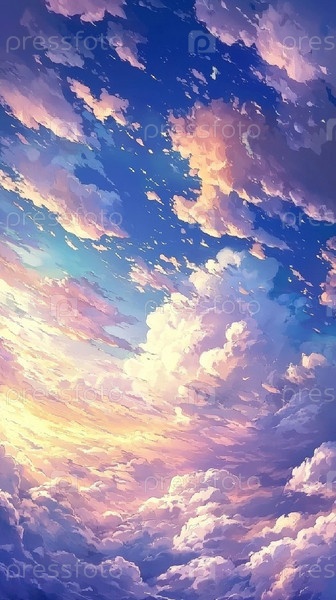 Захватывающее закатное небо, которое красиво заполнено яркими облаками и очаровательными лучами света вокруг