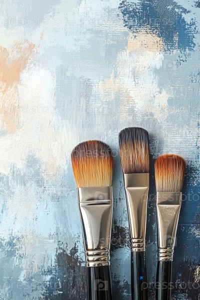Крупный план кистей на текстурированной синей художественной фоне, идеально подходит для творческих проектов